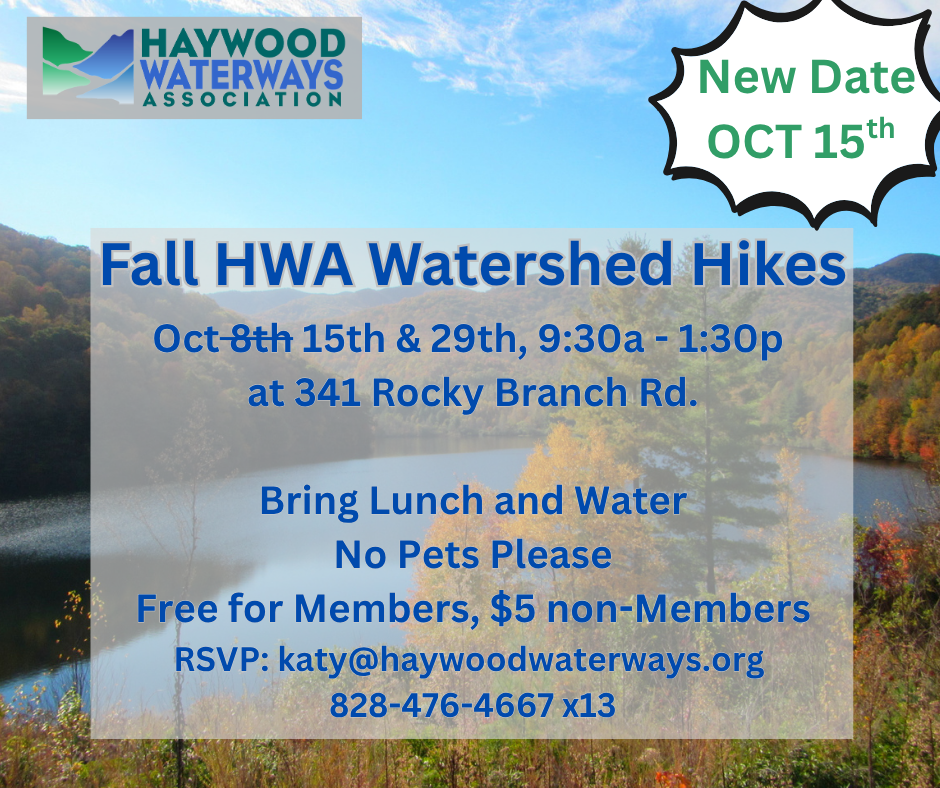 On October 15th, the Town of Waynesville and Haywood Waterways Association will lead a moderate to strenuous 2.7-mile hike in the Waynesville Watershed with the option to tour the water…